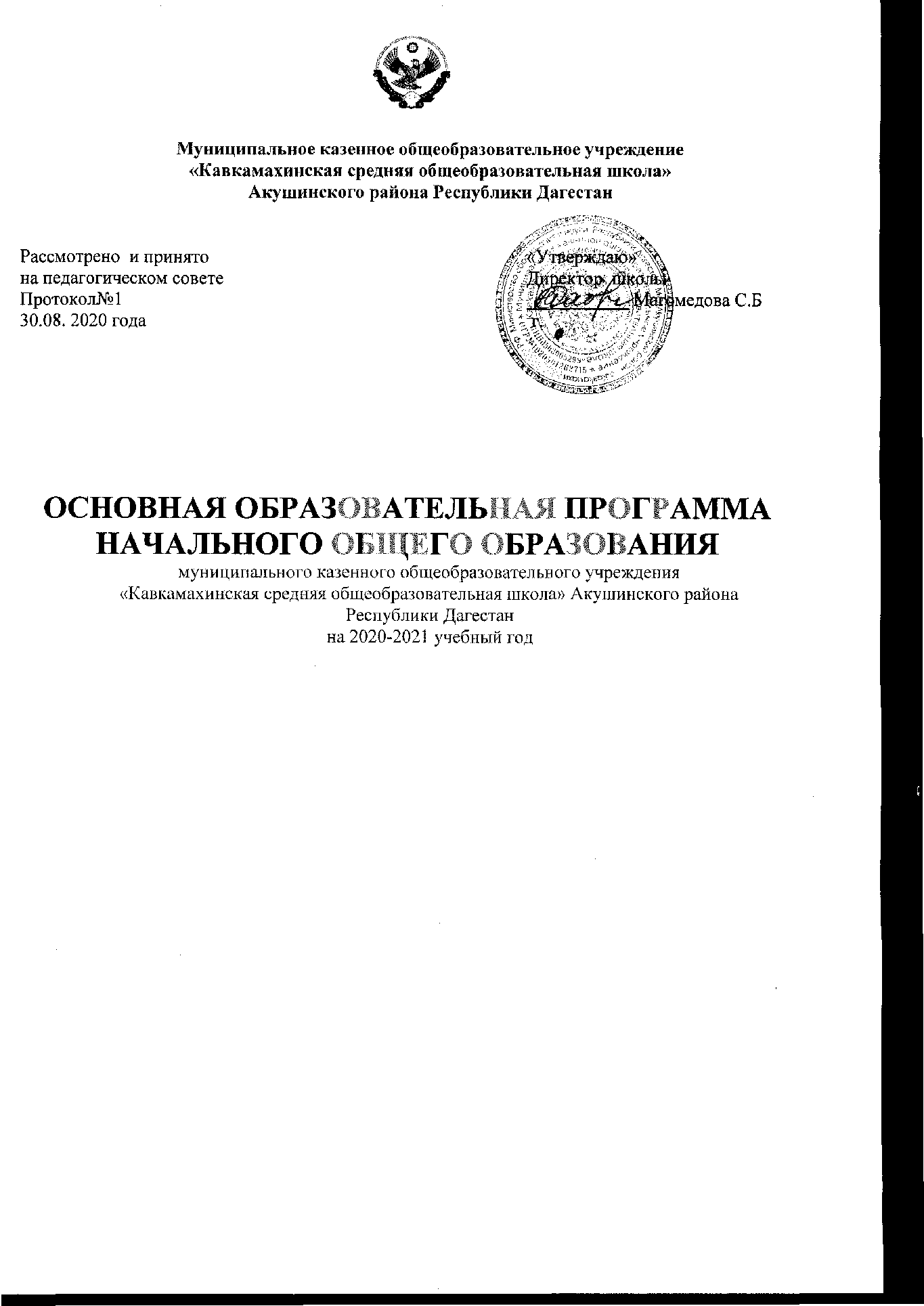 ОСНОВНАЯ ОБРАЗОВАТЕЛЬНАЯ ПРОГРАММА НАЧАЛЬНОГО ОБЩЕГО ОБРАЗОВАНИЯ муниципального казенного общеобразовательного учреждения «Кавкамахинская средняя общеобразовательная школа» Акушинского района Республики Дагестан на 2020-2021 учебный год
